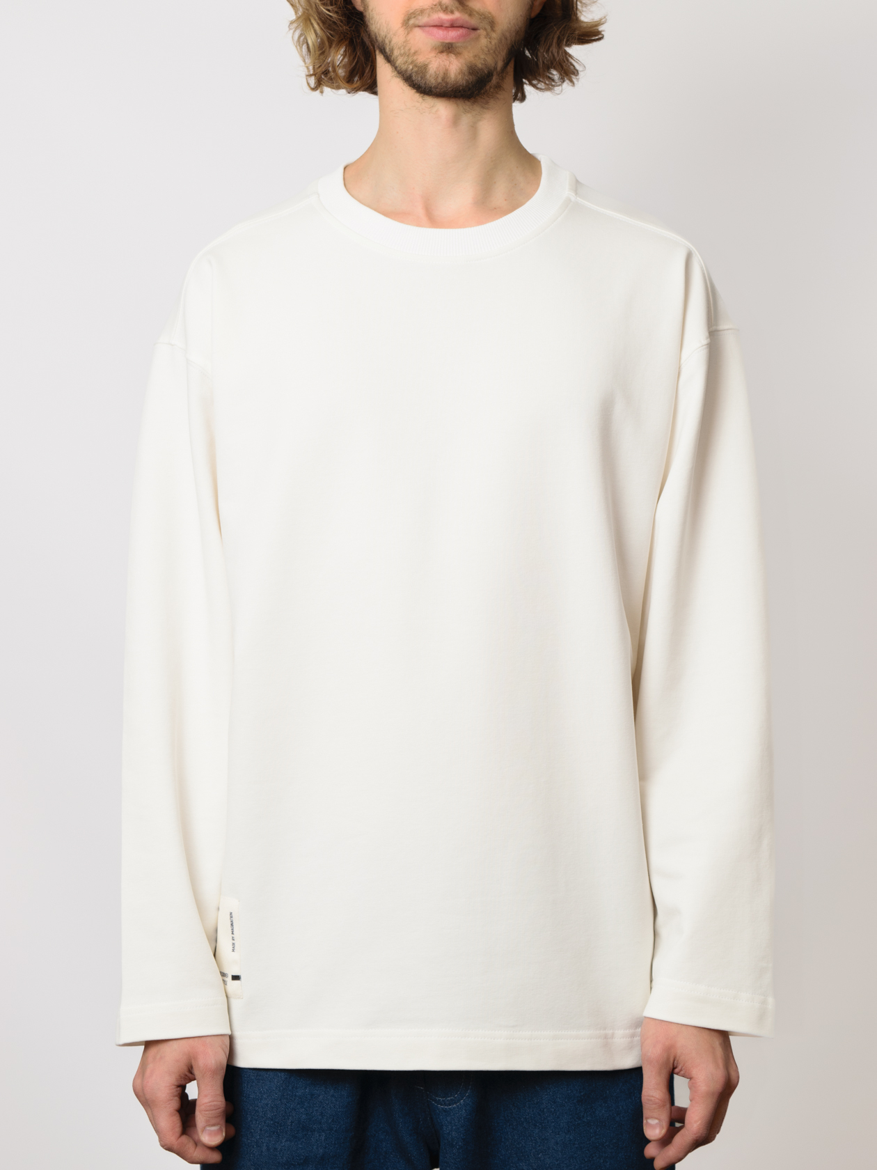 Лонгслив свободного кроя из плотного трикотажа - двунитки, молочного цвета тофу.