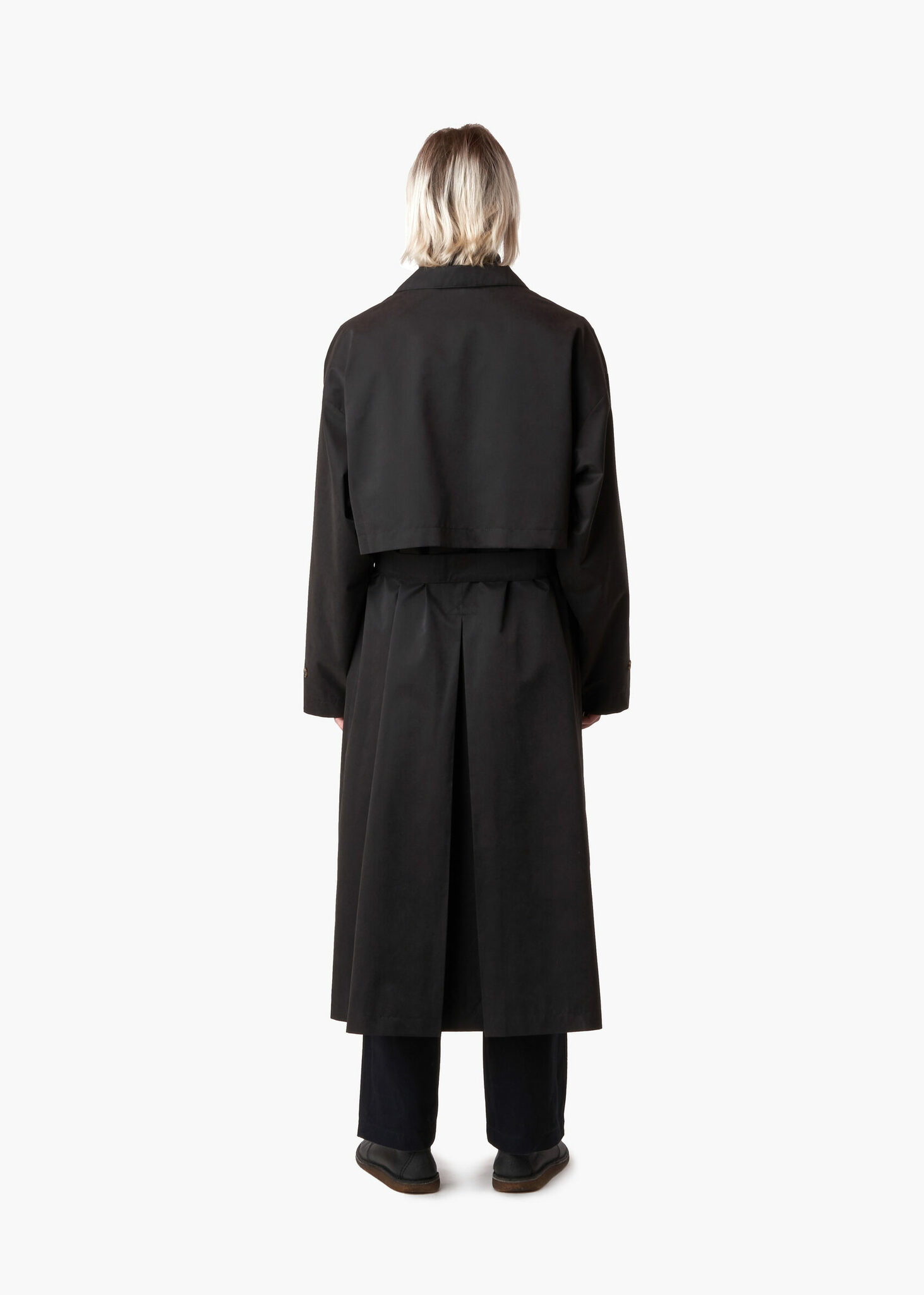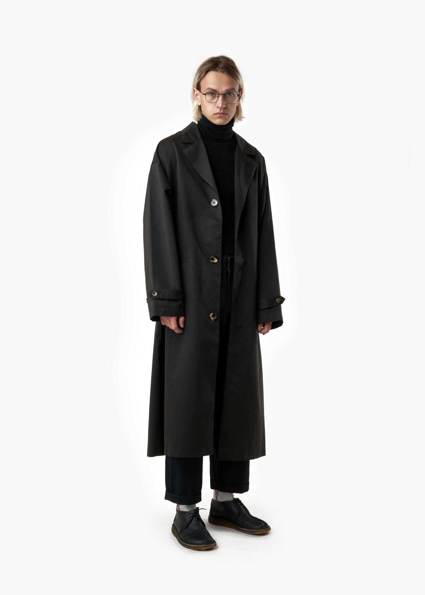Свободный плащ FOS Clothes из непромокаемой ткани с текстурой хлопка. Материал приятный на ощупь и обладает всеми преимуществами плащевой ткани: защита от влаги и ветра.