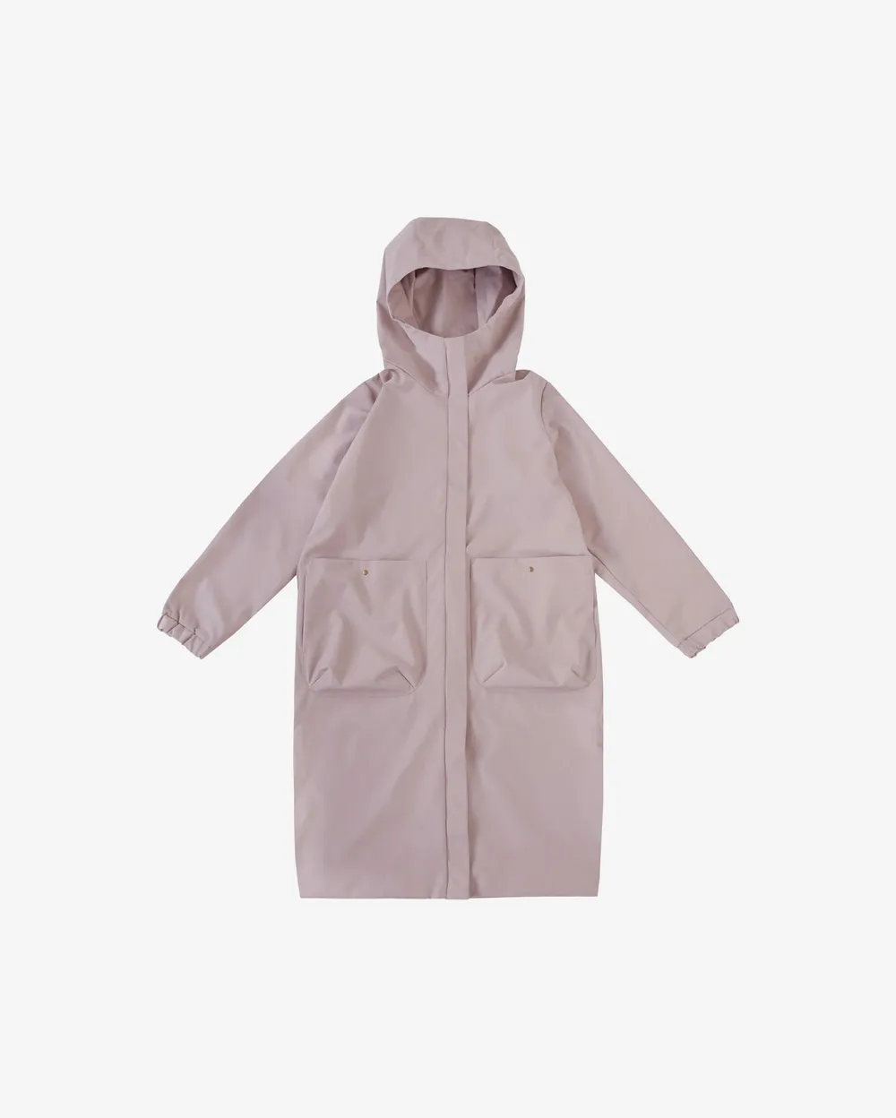 непромокаемый (за счёт специальной ткани с прорезиненной изнаночной стороной), при этом дышащий и подмышками мы ещё дополнительно установили по 2 люверса для вентиляции :)