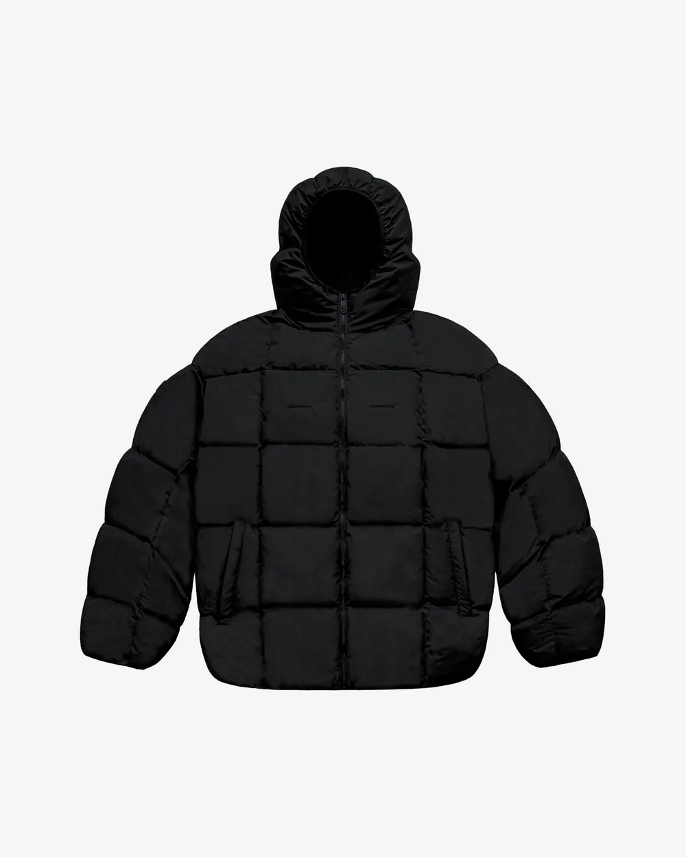 Теплый и объёмный оверсайз паффер сложной конструкции