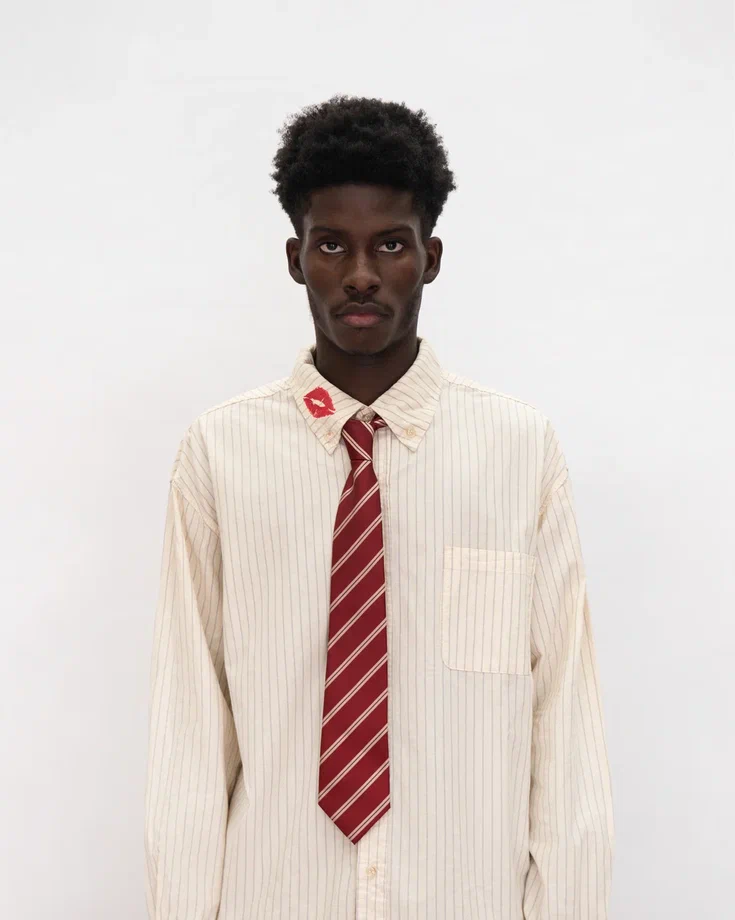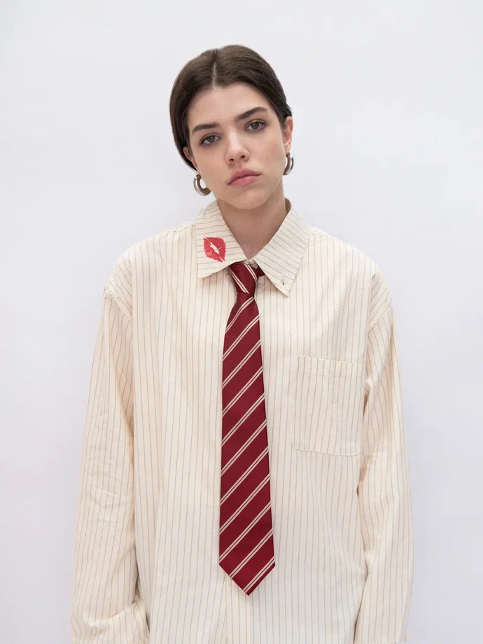 Полосатый галстук — деталь, которая делает образ его или ее интереснее. Классическая форма и универсальный полосатый принт в ярких оттенках — тот самый акцент в духе OVUM. Галстук отлично сочетается с полосатой рубашкой 'Fisrt kiss', его можно завязать вместо ремня на джинсах или повязать на сумку 'Cargo Bag'. Правил нет — проявите фантазию. У каждого галстука есть секретное послание для тебя, загляни внутрь.