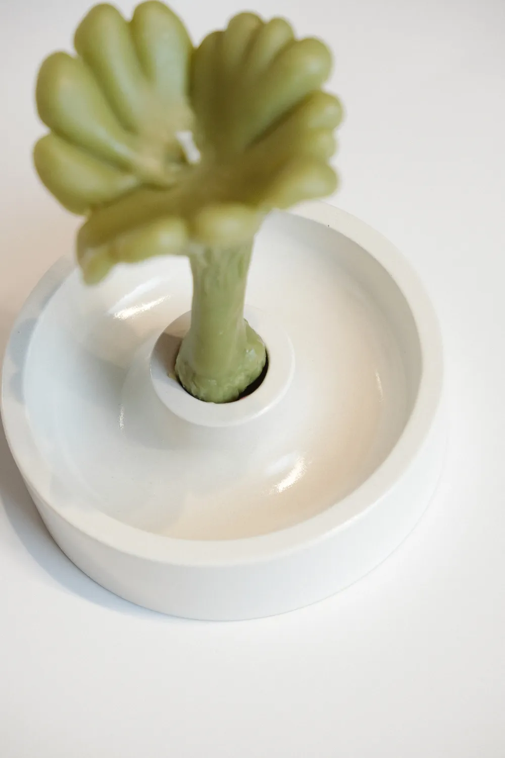 Бетонный подсвечник белого цвета с минималистичным дизайном.