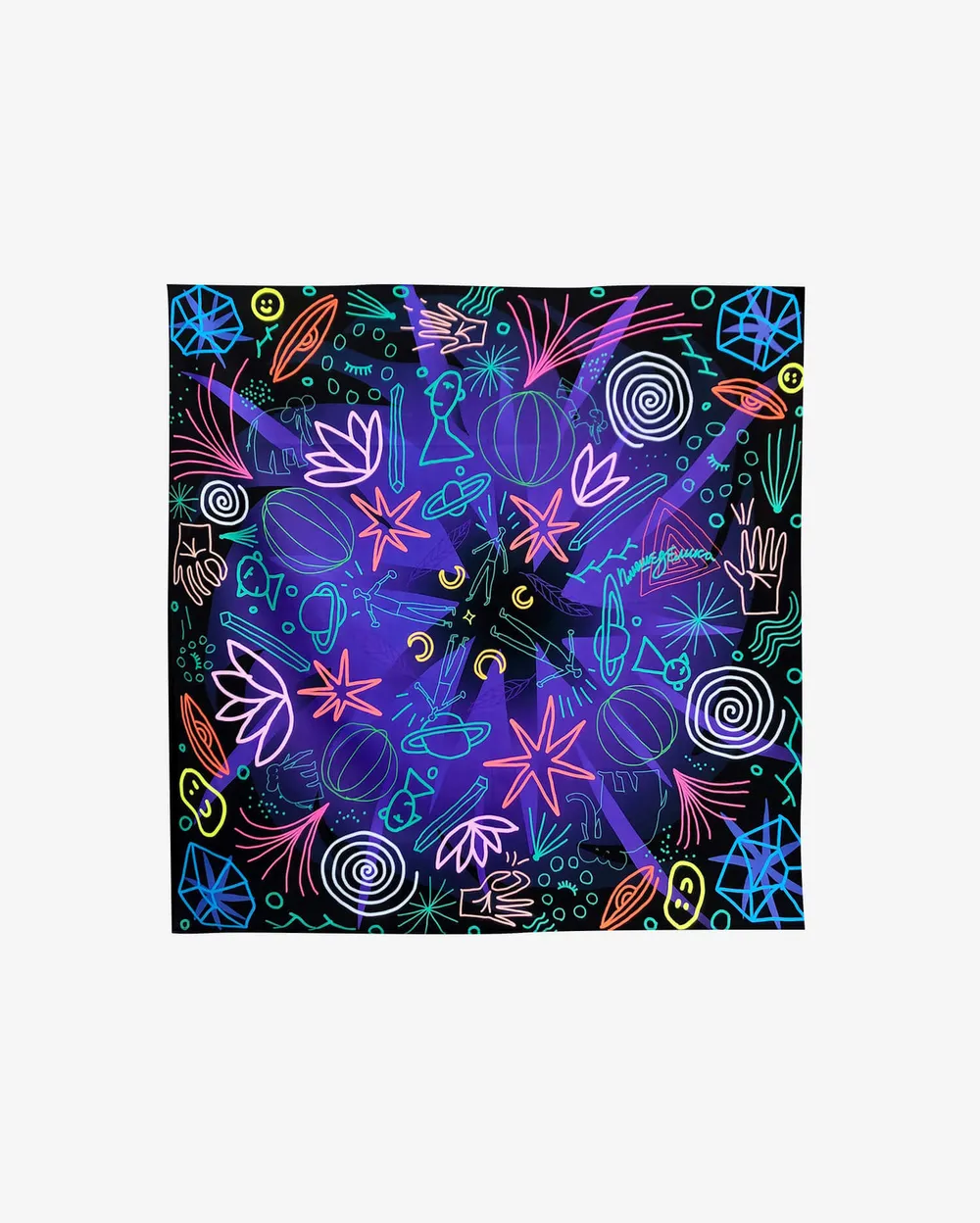 Первая серия состоит из 3 работ, все светятся в ультрафиолетовом освещении. Очень качественная и яркая печать, размер полотен полтора на полтора метра. Можно повесить дома в интерьере или на веранде на даче.