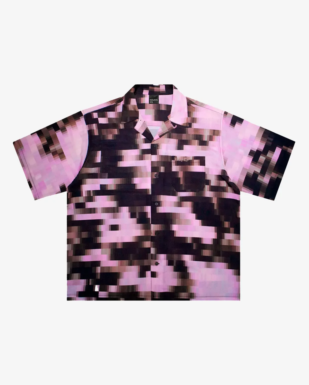 Рубашка выполнена из легкой смесовой ткани: быстросохнущая, практически не мнется. Цифровая печать. Оверсайз фит. Матовые пуговицы. Брендинг в виде вышивки.