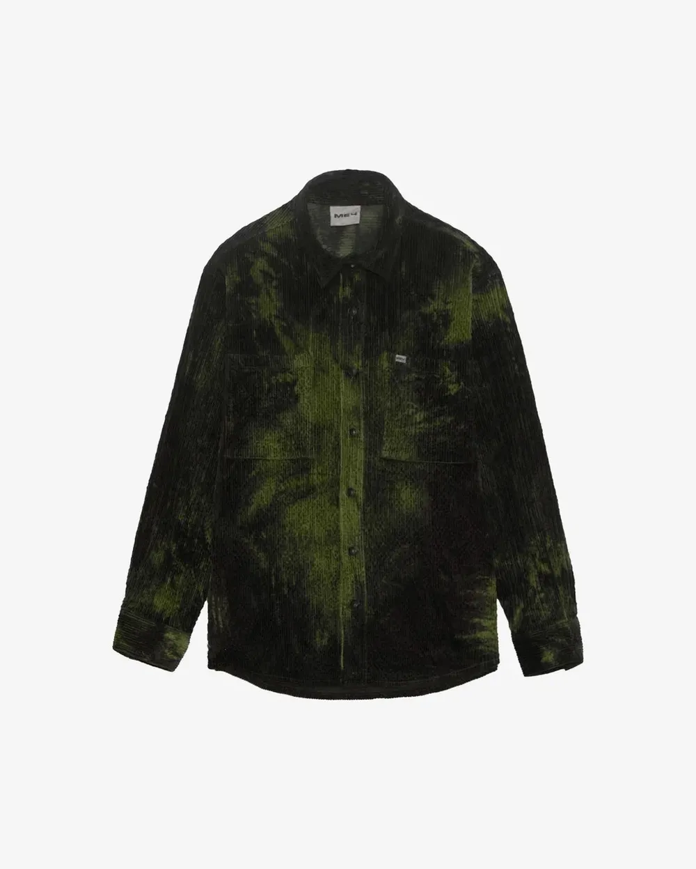 Рубашка свободного кроя, сделанная из крупного и очень мягкого вельвета с выразительной фактурой, подчеркнутой особой обработкой и фабричным окрашиванием Tie-Dye для достижения уникального неоднородного оттенка.