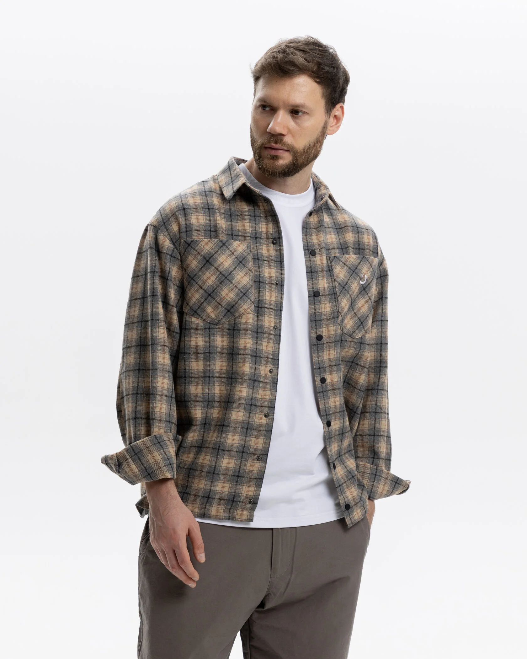 Плотная текстурная фланелевая рубашка создает ощущения путешествия по осеннему хвойному лесу. Изделие легко встроется в самые разные образы и станет любимой вещью в гардеробе