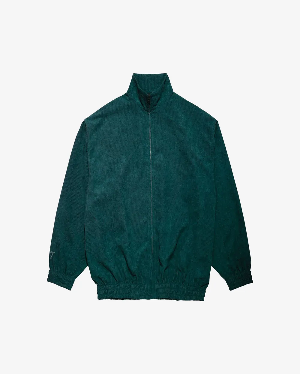 Рубашка оверсайз на молнии из вельветовой ткани изумрудного цвета с лого бренда.