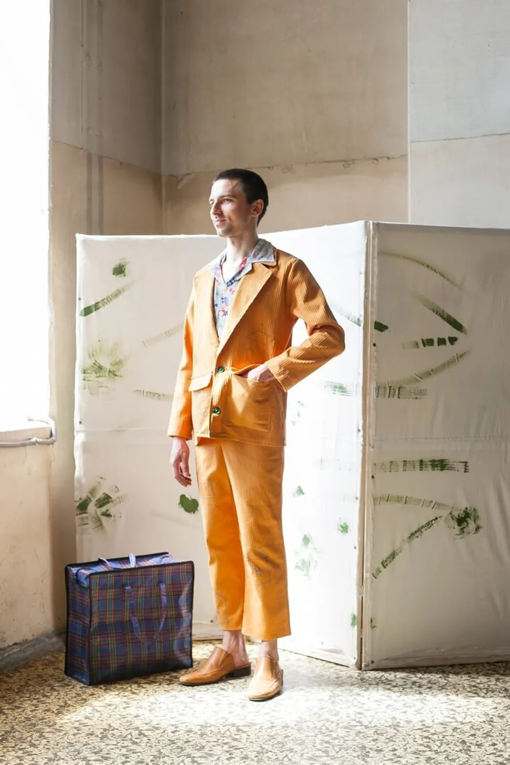 Пиджак сделан из винтажного вельвета. Костюм украшен вышивкой вручную.