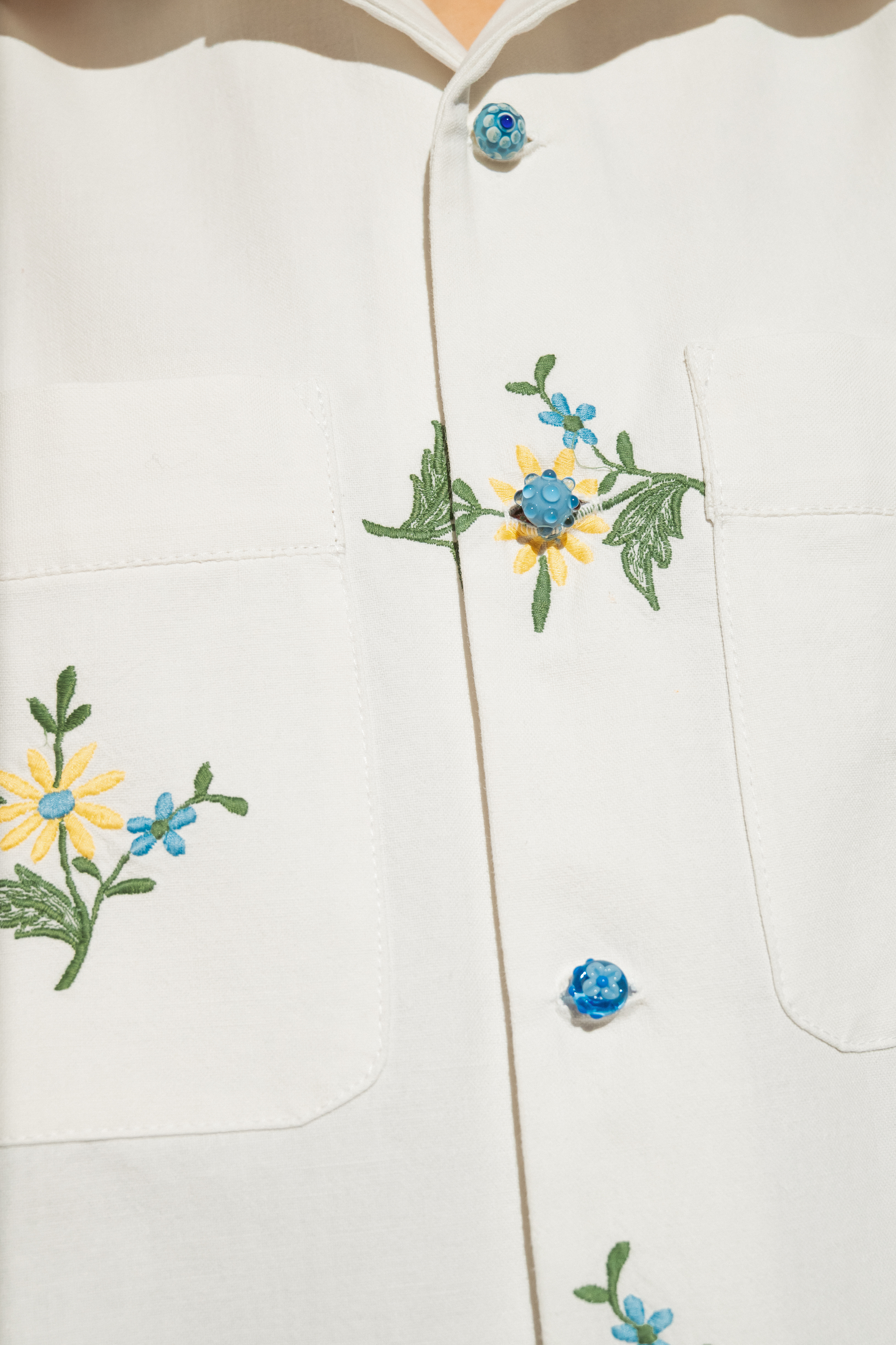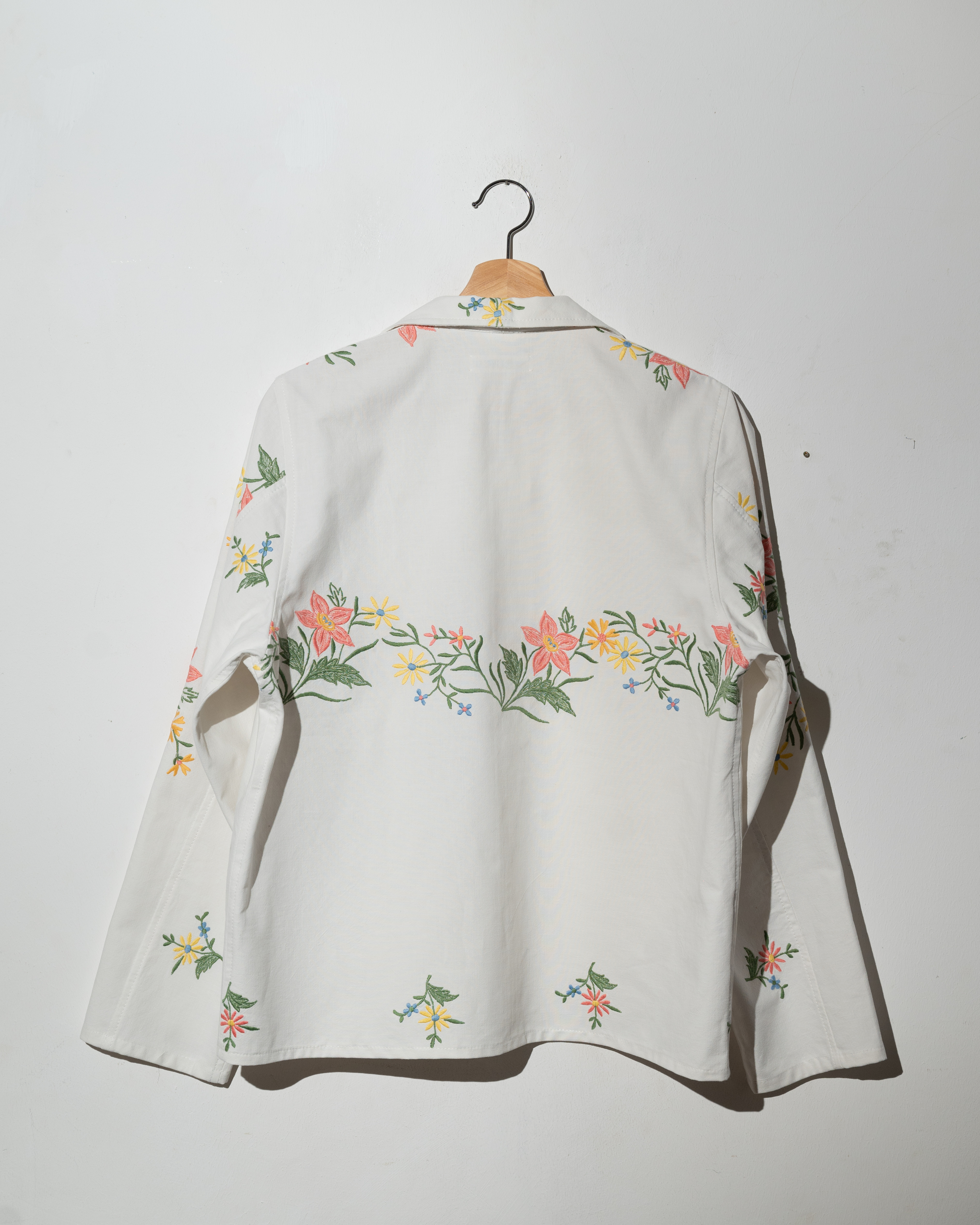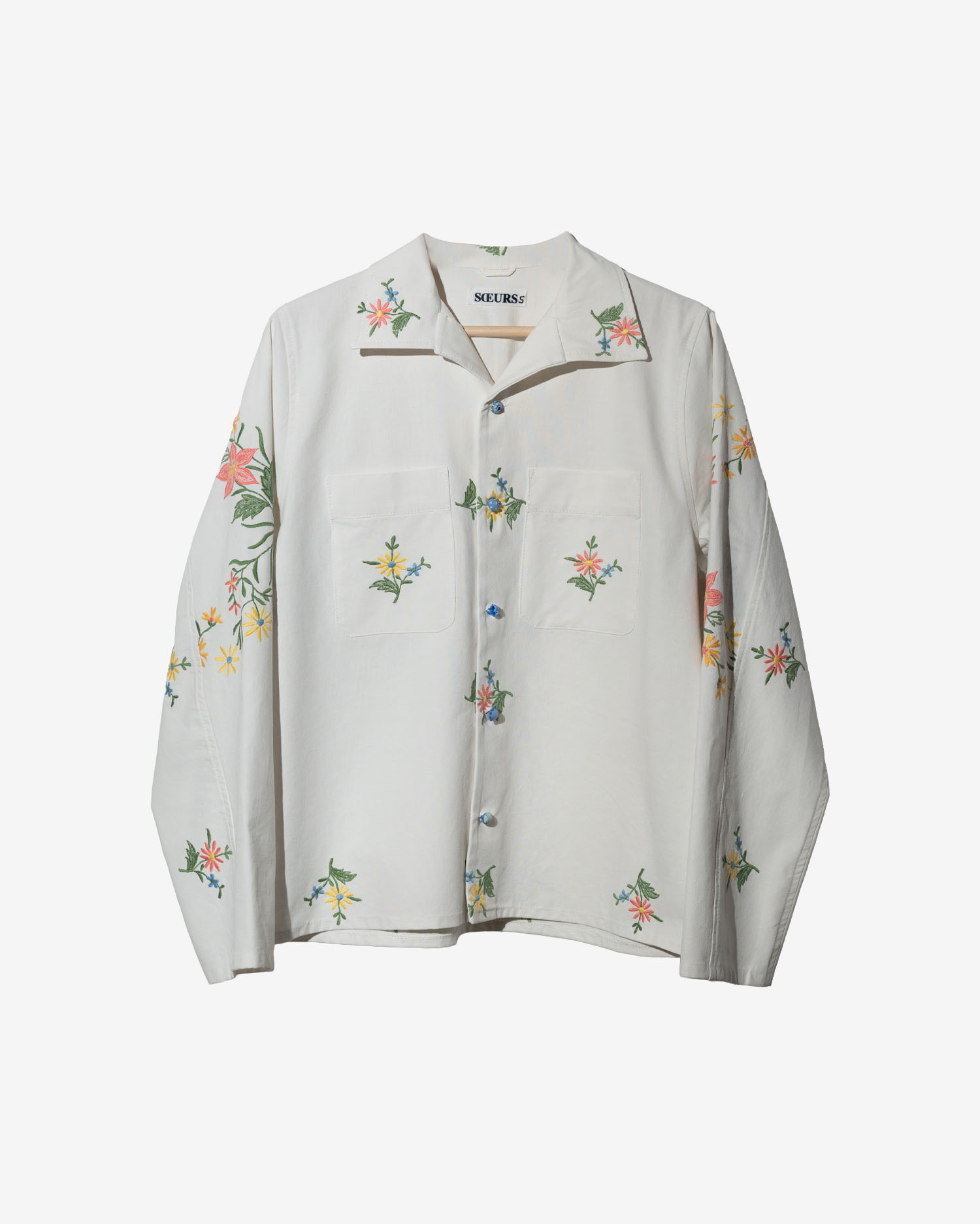 Рубашка с длинными рукавами сшита в одном экземпляре из антикварной хлопковой скатерти (хлопок 100%), периода 1970х годов. Скатерть была украшена вышитыми цветами.