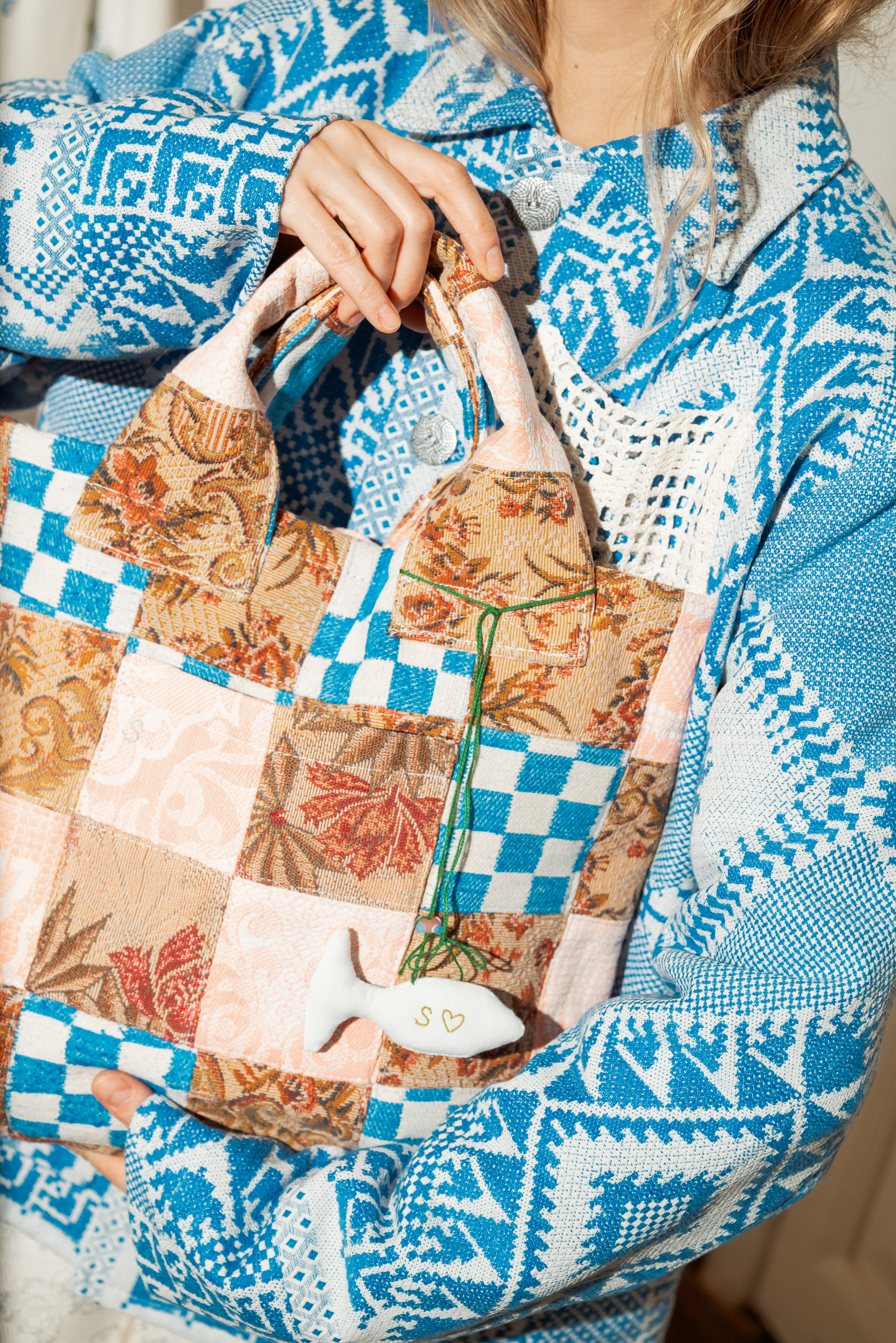 Сумка сшита в технике пэчворк из антикварных хлопковых одеял и гобелена.