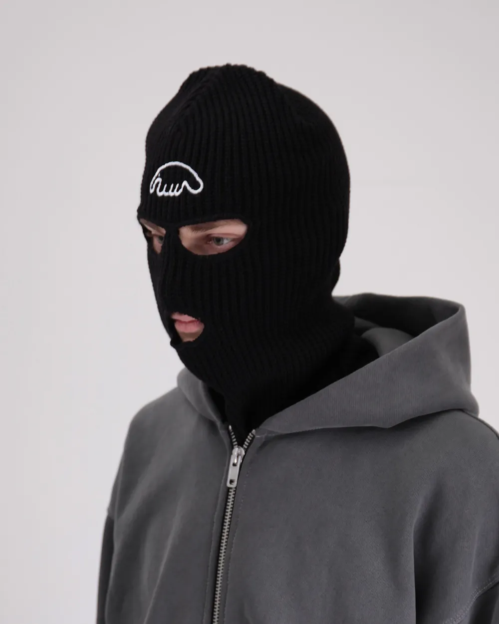 Лыжная шапка-балаклава Anteater, крупное плетение, вышитое лого. Можно использовать как обычную шапку, свернув балаклаву в подворот.