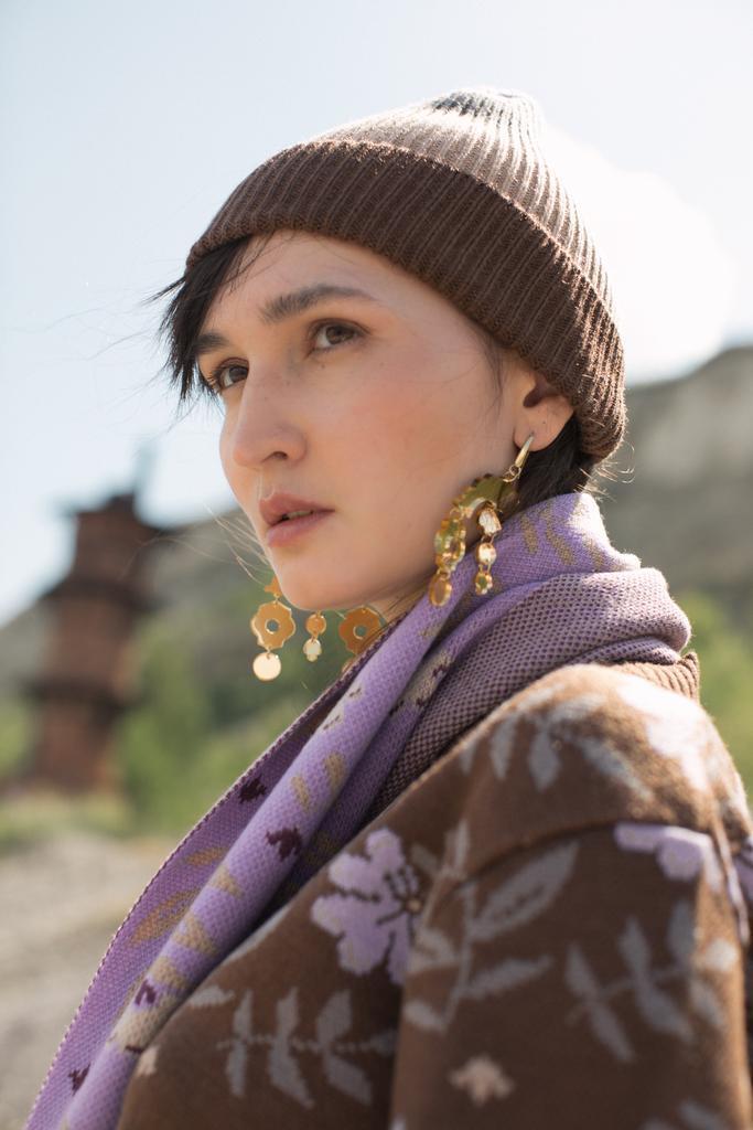 Шапка классического кроя с оригинальными полосками идеально подойдет к шарфам из серии Flora и Kilim.