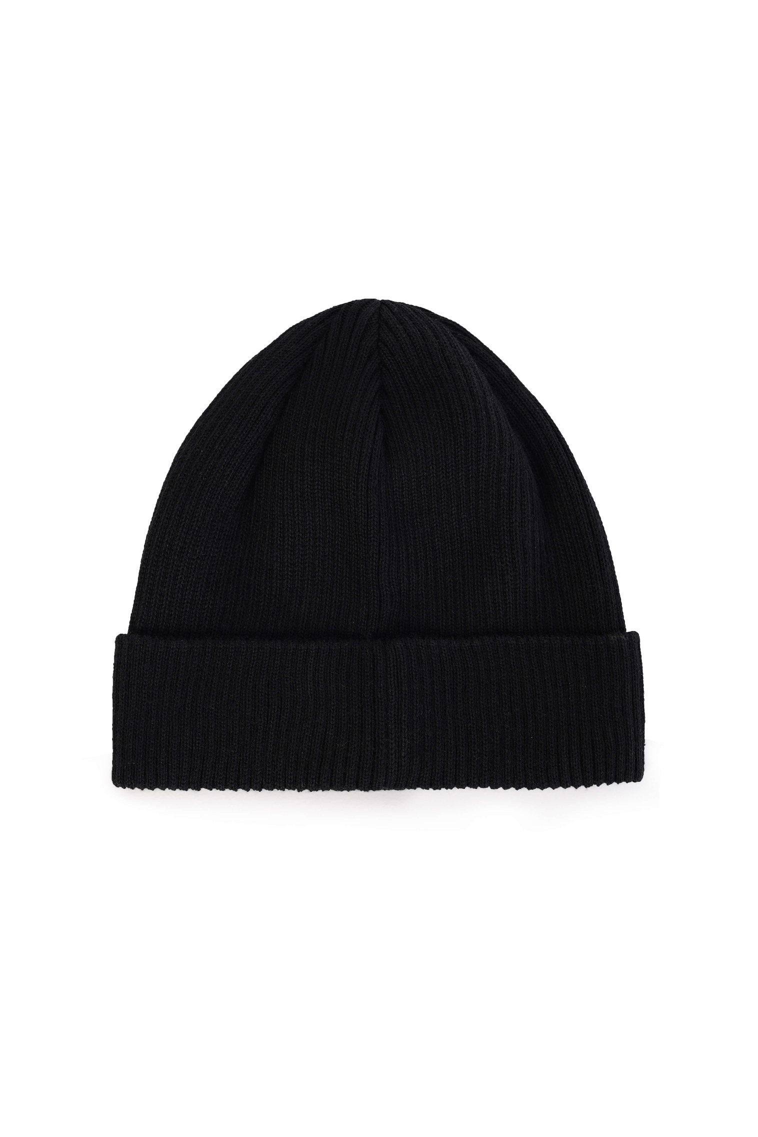 Шапка базового кроя с примесью шерсти, прорезиненный логотип бренда в виде нашивки спереди.