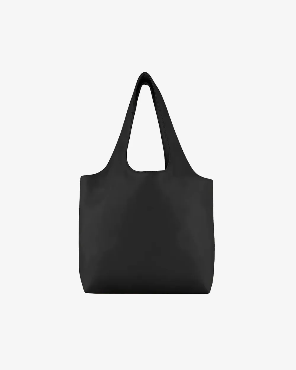 Функциональный шоппер на полукруглой длинной ручке. Сумка имеет маленький внутренний карман и закрывается на магнитную металлическую кнопку.