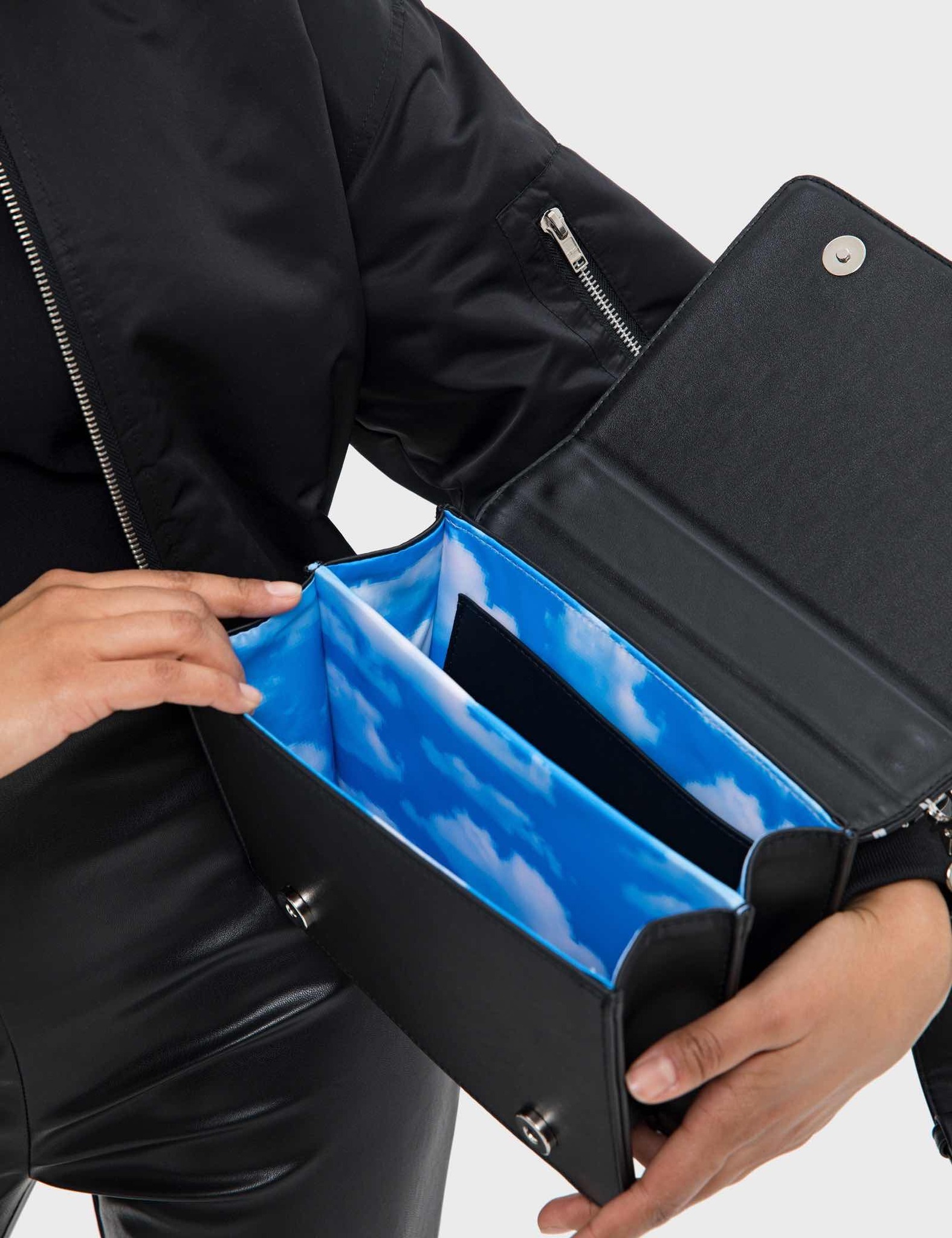 Сумка ZNY из коллекции SS22, выпущенная в коллаборации с ARNY PRAHT. Сумка имеет откидной клапан на магнитах и ремень на карабинах, регулируемый по длине. Внутри сумки два отделения. Подкладка сумки выполнена из искусственного шелка, окрашенного методом сублимации.