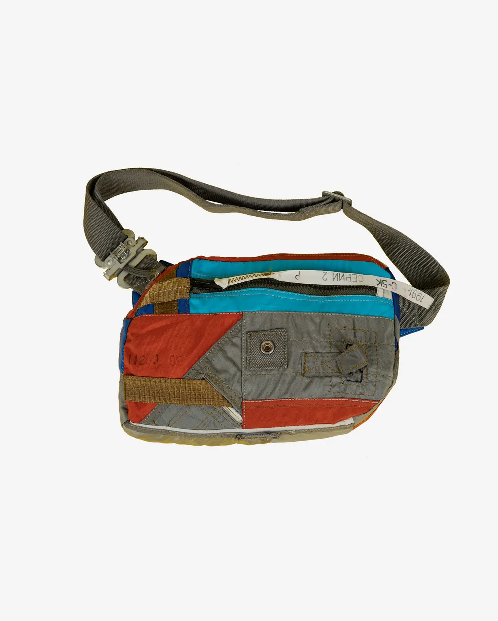 В сумке используются небесно-голубые детали от спортивных куполов.