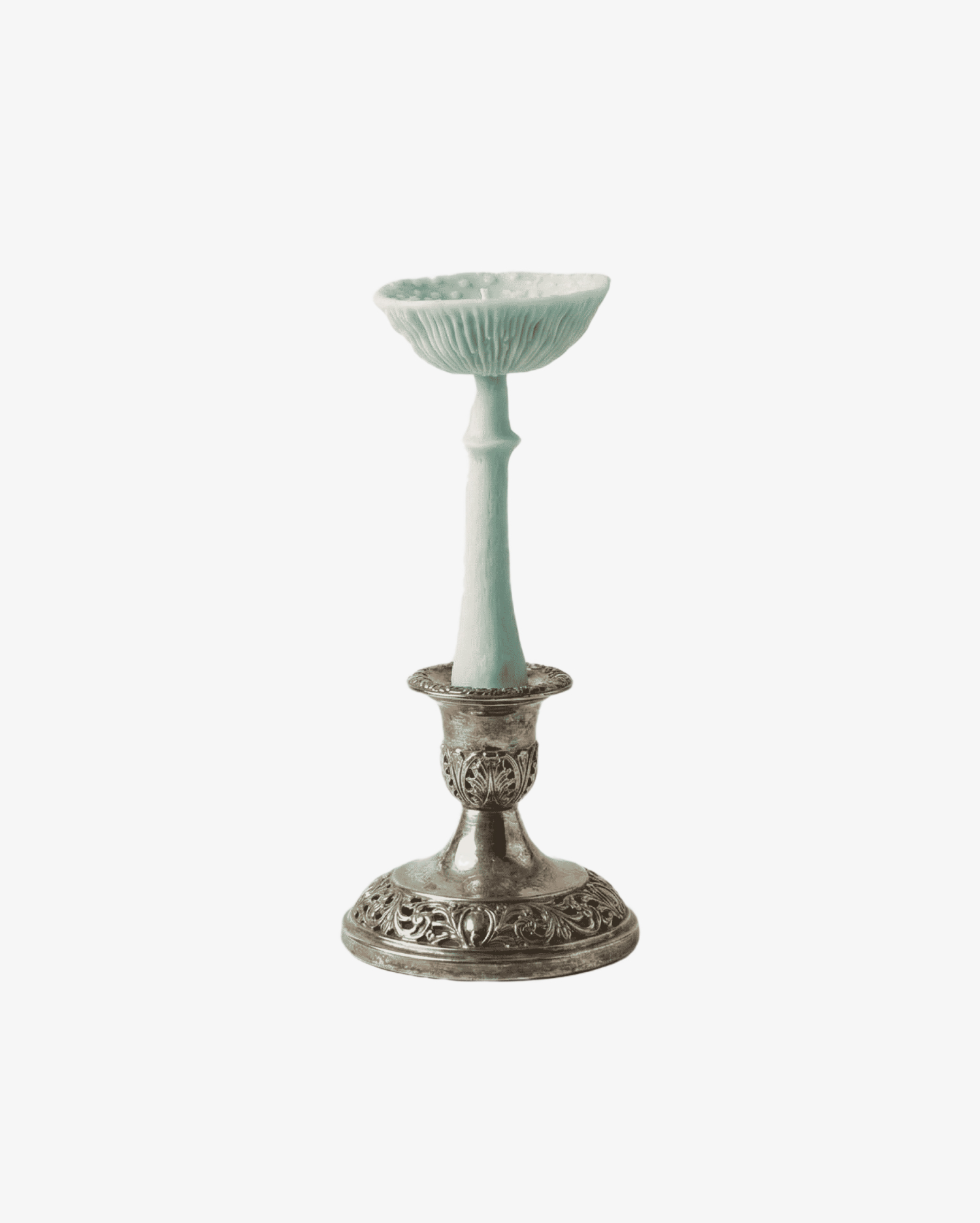 Столовая свеча "Гриб Мухомор" голубого цвета с ароматом "Морская соль", выполнена из пчелиного воска с добавлением французских ароматизаторов.