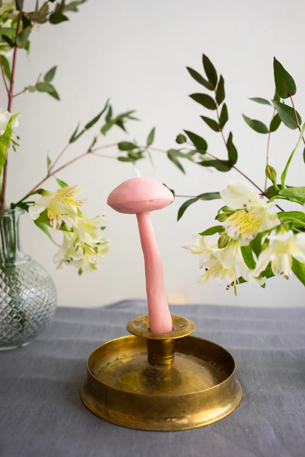 Столовая свеча "Гриб Подберёзовик" нежно-розового цвета с ароматом черной смородины, выполнена из пчелиного воска с добавлением французских ароматизаторов.
