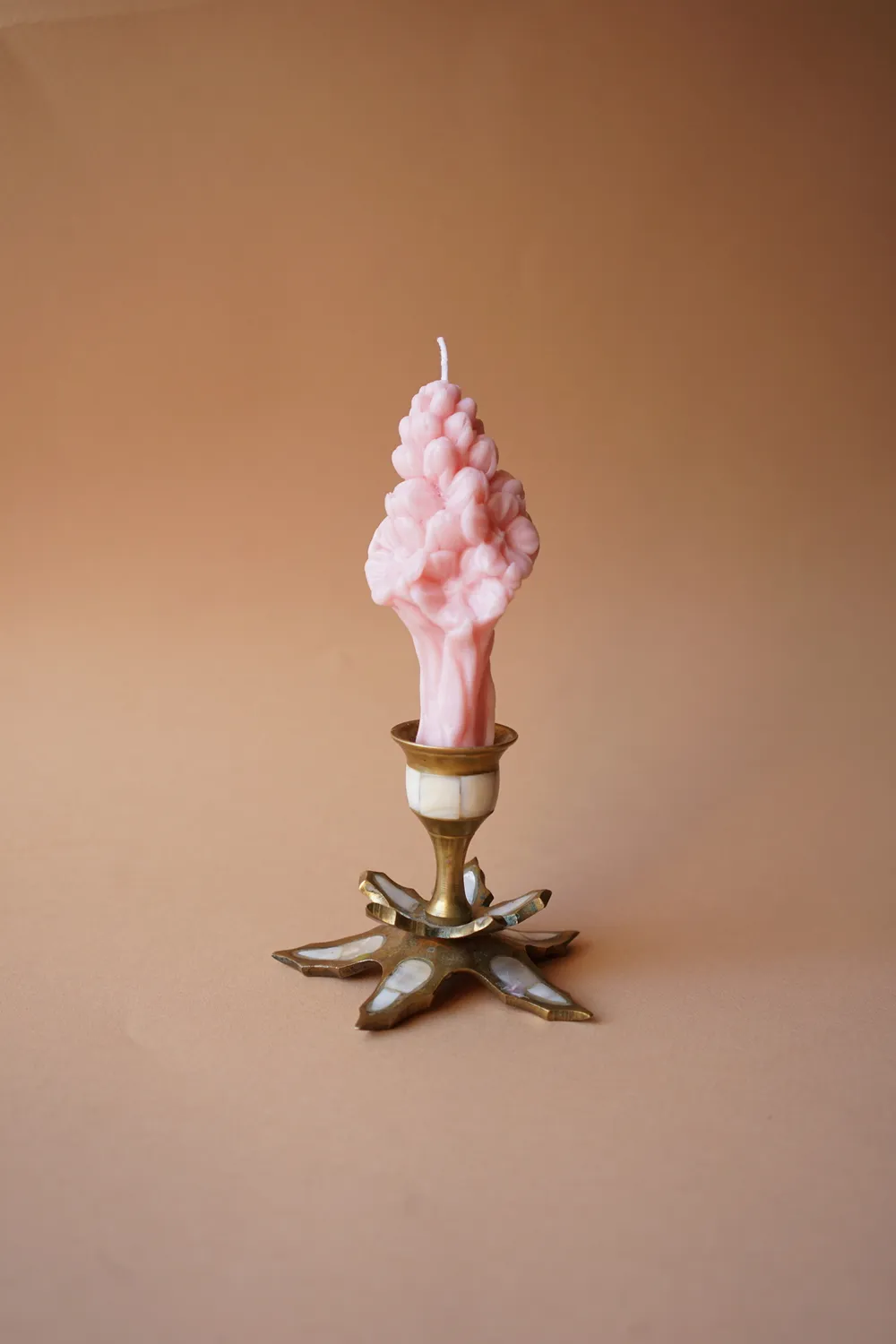 Столовая свеча "Цветок Маленький" розового цвета с ароматом "черной смородины", выполнена из пчелиного воска с добавлением французских ароматизаторов.