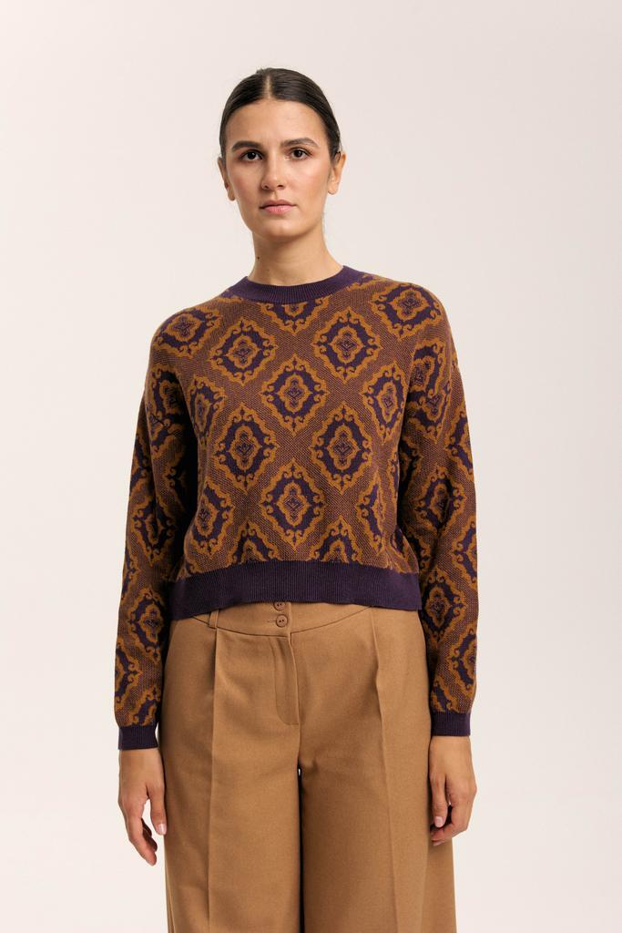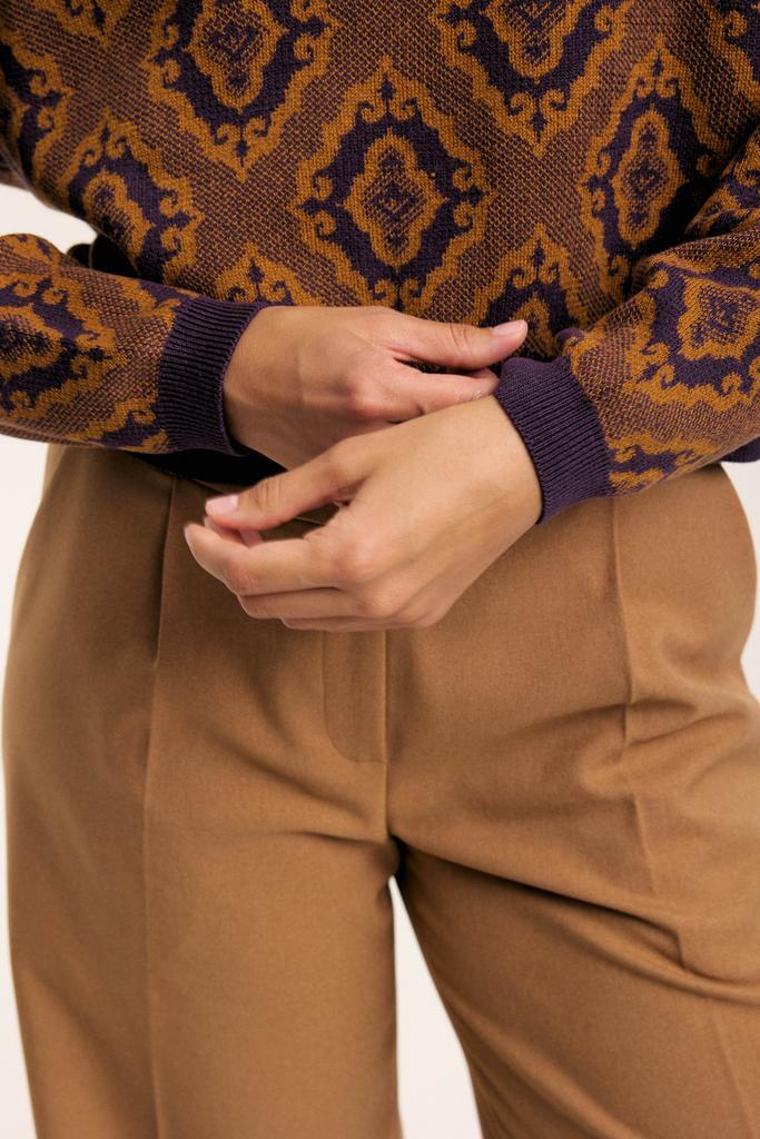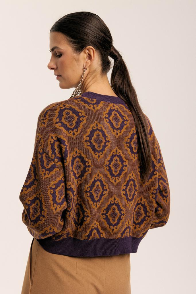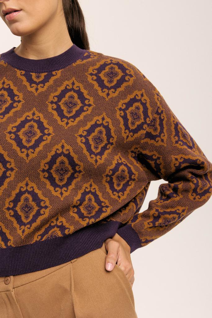 Укороченный свитер с жаккардовым узором, вдохновленным татарским орнаментом.