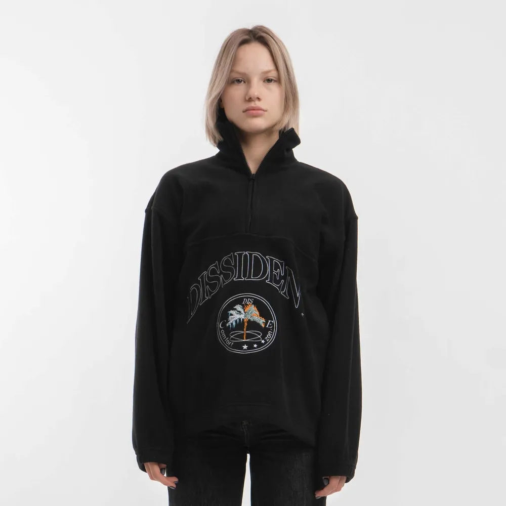 Кофта из двустороннего флиса с высоким горлом на молнии и утяжками снизу. Нанесение выполнено вышивкой