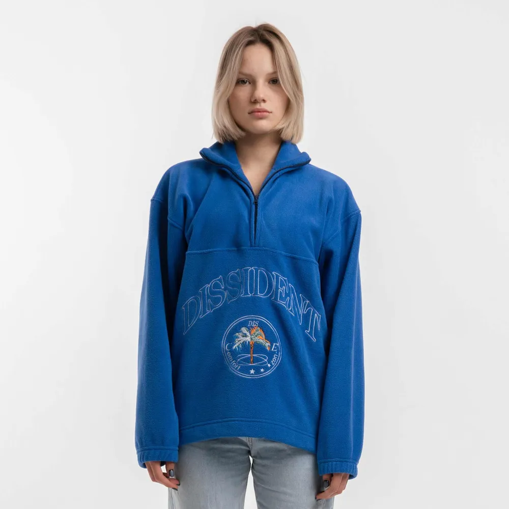 Кофта из двустороннего флиса с высоким горлом на молнии и утяжками снизу. Нанесение выполнено вышивкой