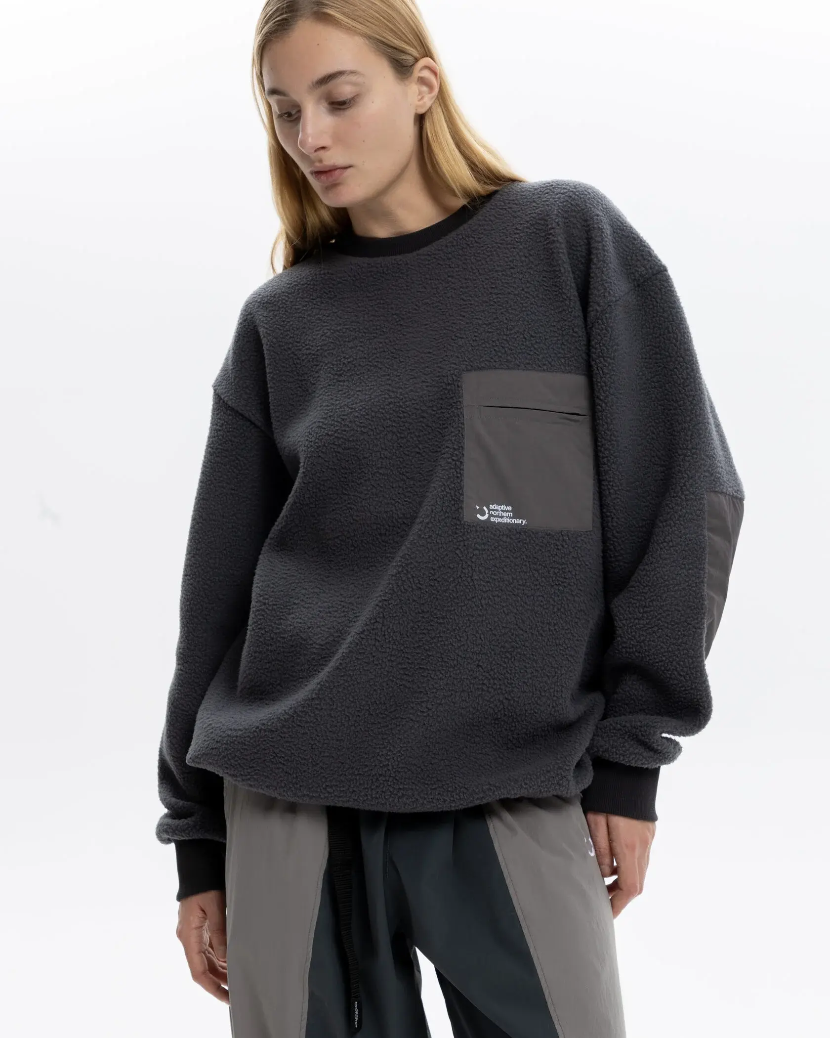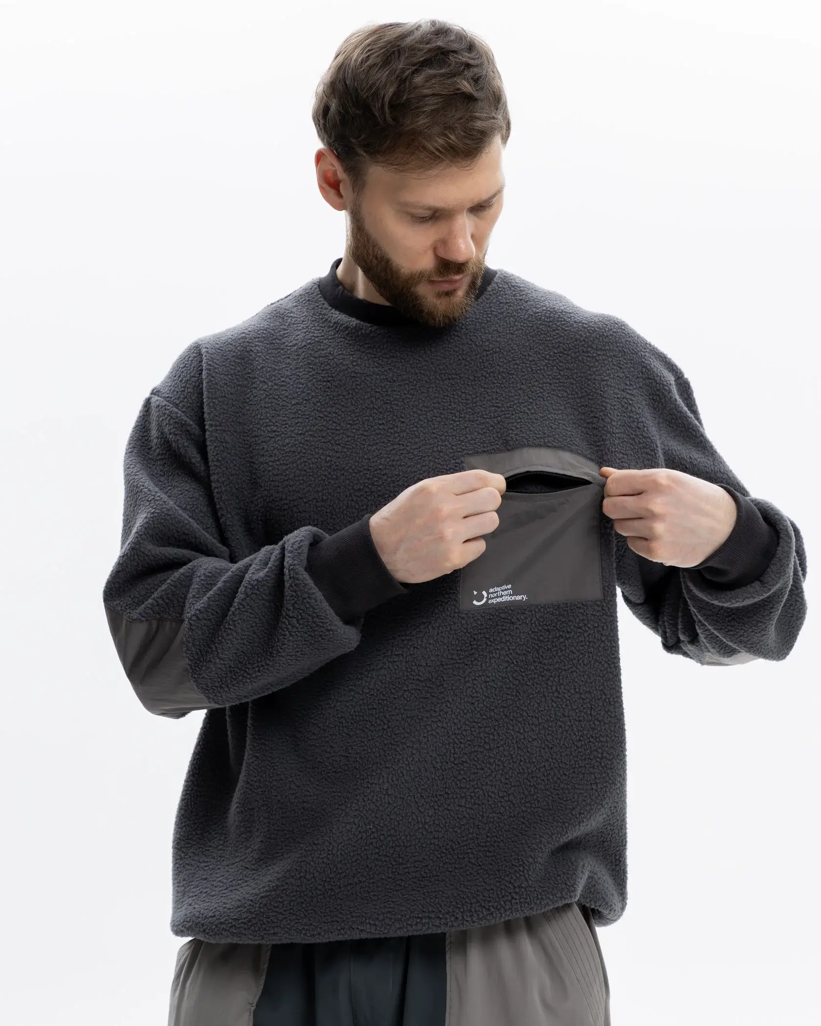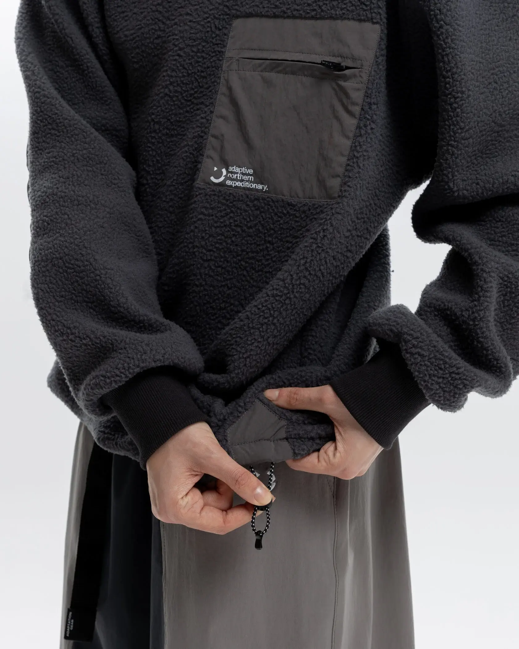 Теплый, плотный флис с текстурой шерпы согревает в самый холодный день. Оверсайз посадка позволяет укутаться в изделие, когда ветер пронизывает. Нагрудный карман, резинка по-низу для посадки, плащевые вставки на локтях создают уникальный дизайн изделия