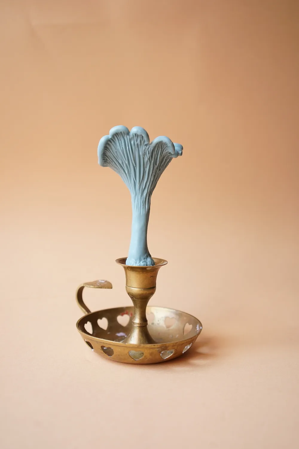 Столовая свеча "Гриб Лисичка" сизого цвета с ароматом пачули и дерева, выполнена из пчелиного воска с добавлением французских ароматизаторов.