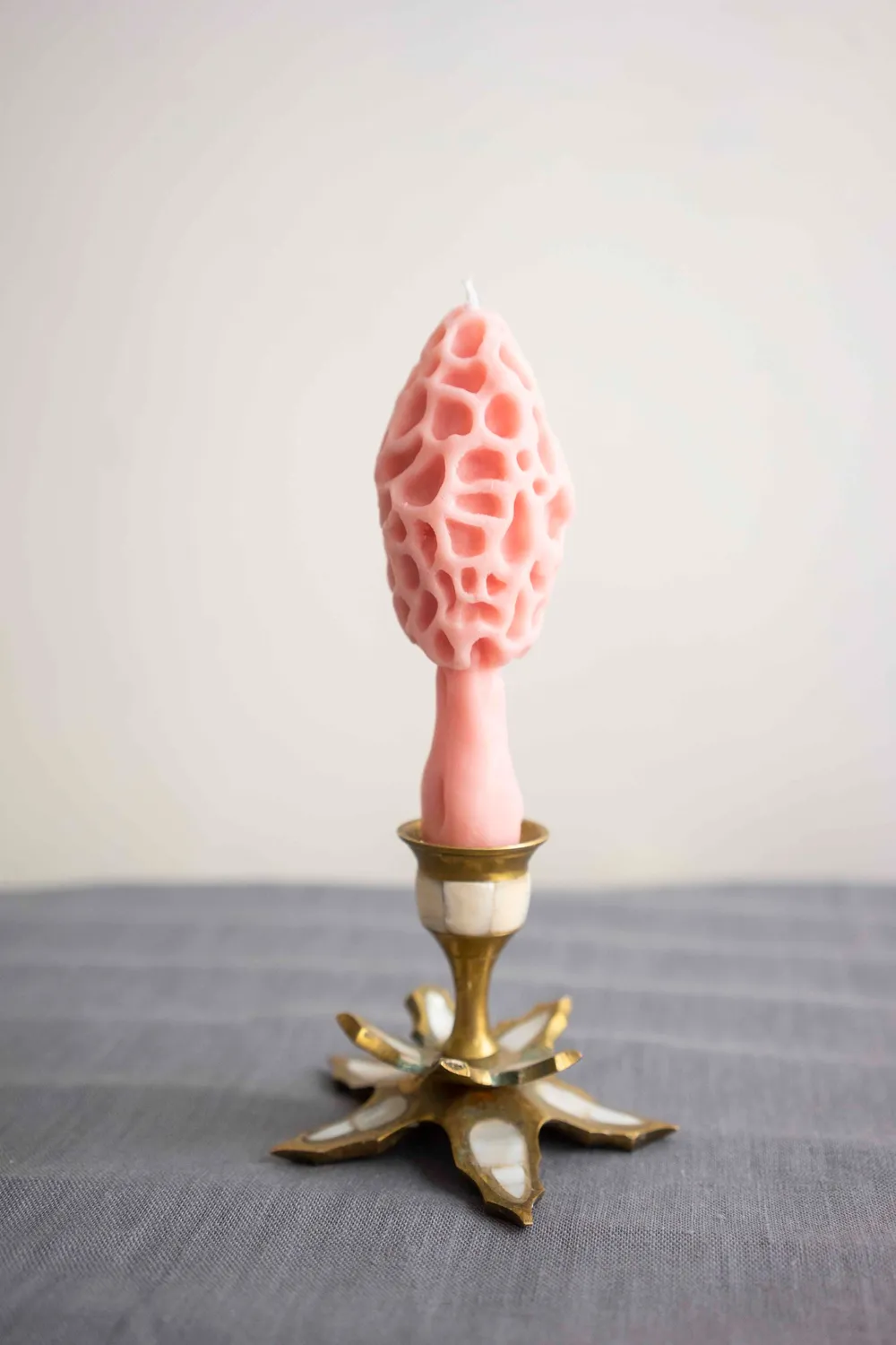 Интерьерная столовая свеча «Гриб Сморчок», розового цвета с ароматом «бабушкин сад».
