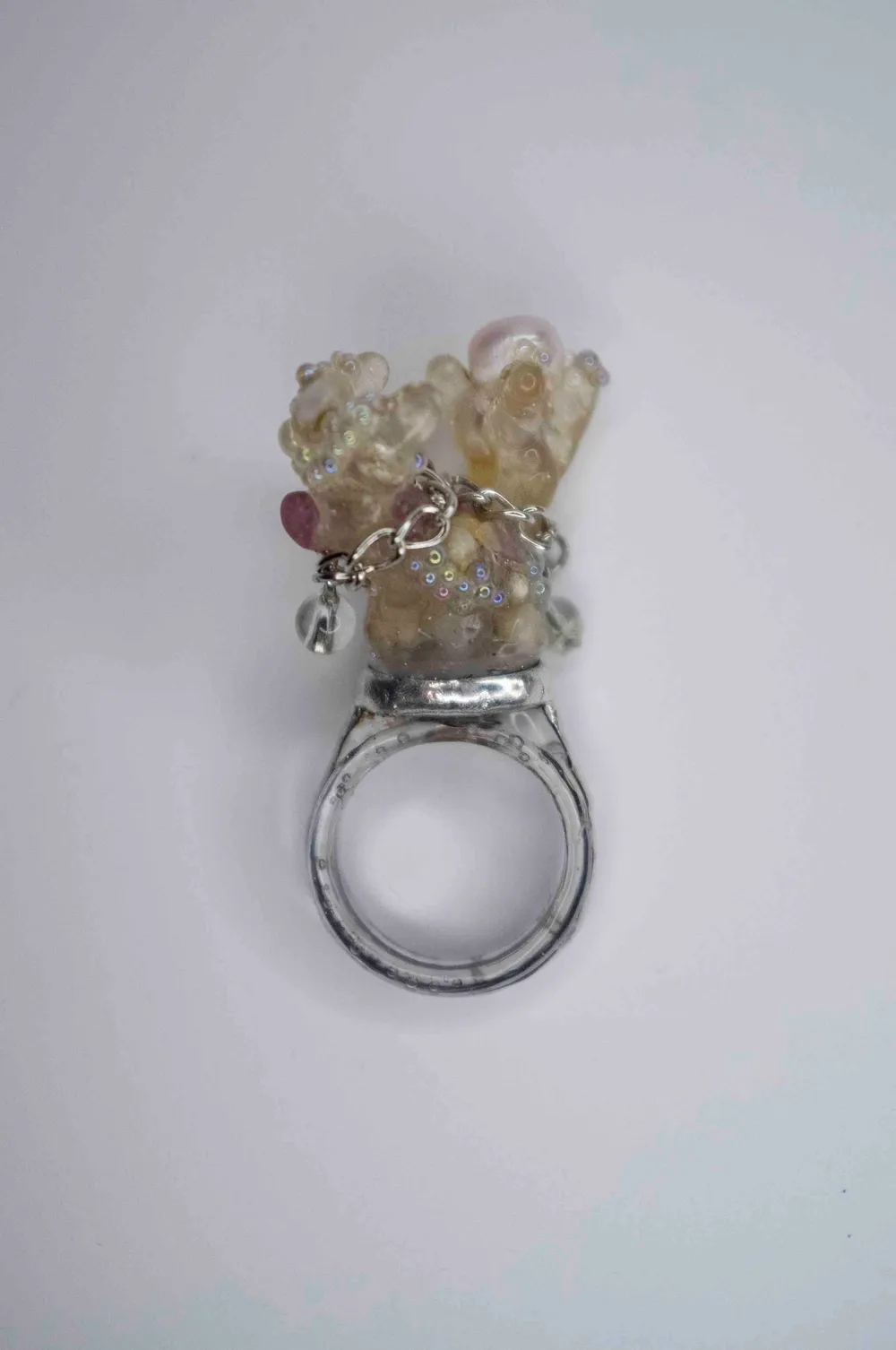 кольцо с щупальцами ракушками жемчугом цепью и висюльками