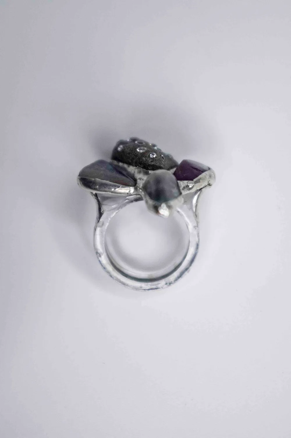 кольцо с флюоритом галькой и фианитами