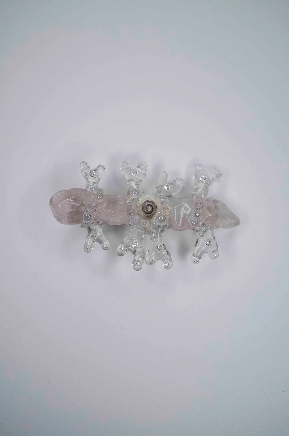 заколка с розовым кварцем щупальцами фианитом и ракушкой