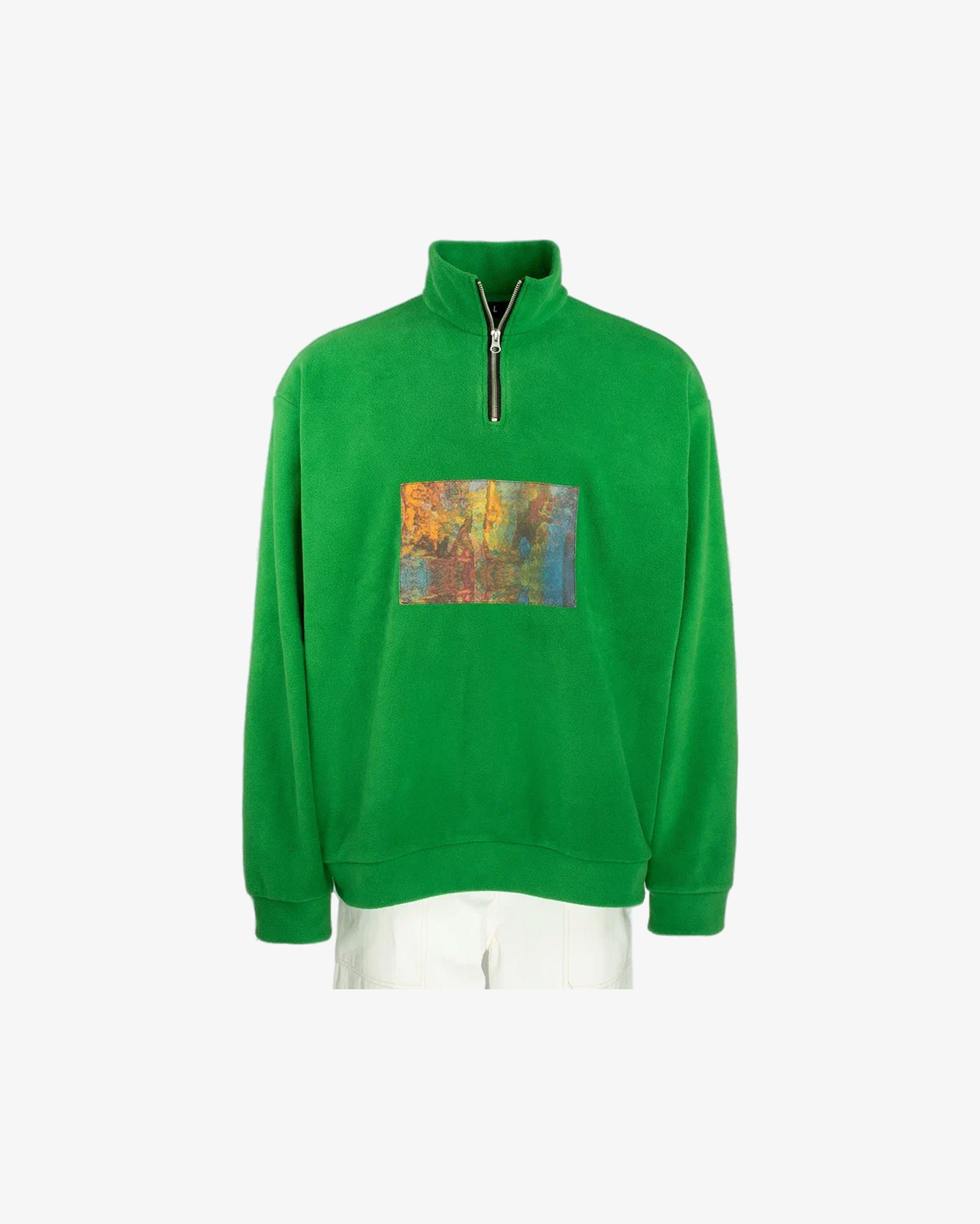 Свитшот прямого силуэта, свободного объема, со спущенным длинным рукавом. Воротник стойка с застежкой на молнию.